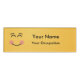 A smiling face, with smiling eyes and rosy cheeks. Custom text fields for name and occupation.