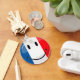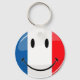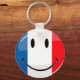 Show off your homeland pride for the country of France with this shiny round smiling French flag.