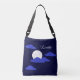 Smiling Full Moon with Clouds: Dark Blue Crossbody Bag
