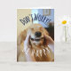 Brighten someone's day with this cute greeting card! Design features a golden retriever dog who has his eyes closed and a big goofy grin as he's getting a face massage. Text on front says, "Don't Worry! Be Happy!" while customisable inside text reads, "Hope your day is wonderful."