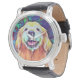 Add a little golden happiness to your day with this cute watch! Design features an art portrait headshot of a smiling golden retriever dog, who is rendered in vibrant colours.