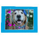 Tell someone you love them with this cute gift bag! Design features a photograph of a happy, smiling golden retriever dog who is wearing a baseball cap, and is surrounded by pink hearts and the word LOVE with a paw print inside. Perfect for Mother's Day, Valentine's Day, or any day at all!