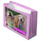 These two personalised and stylish glossy gift bags were simply ideal to carry wedding gifts wrapped in the matching gift wrapping paper. The customised text printed on the gift bags was precisely as ordered and while the photo does not quite do the gift bags justice, rest assured they look fabulous. The gift bags were securely packaged for safe transit arriving undamaged and it was a speedy turnaround from ordering to delivery. Thank you Zazzle for another 5-star transaction in every way!