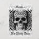 Take a walk on the dark side and really stand out with this beautiful black and white lace filigree smiling skull Halloween party invitation. The front has a smiling skull in a lace filigree style that almost appears to be lifting off of the paper. The back has a beautiful white coffin lining taffeta satin look, with vintage black text. Created by Simply Farmhouse Press.
