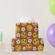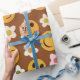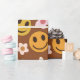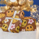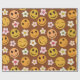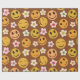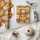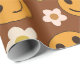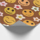 This is cute orange and yellow smiling happy faces with retro flowers on dark brown background.