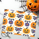 Wrap your gifts in ghoulish glee with this Halloween tissue paper, featuring a festive pattern of smiling jack-o'-lanterns. Cheerful pumpkins with classic carved faces are surrounded by delicate purple flowers and twinkling stars. This charming design adds a spooky-sweet touch to any present.