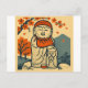 This postcard features a warm and gentle illustration of a smiling Jizo guardian, inspired by traditional Japanese folk art.