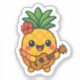 Bring island vibes to your world with this ultra-cute Kawaii pineapple sticker! With big sparkling eyes, a bright smile, a colourful flower lei, and a tiny ukulele, she’s ready to strum her way into your heart. The soft grey background and clean white border make this sticker pop on any surface—perfect for laptops, water bottles, journals, or wherever you need a burst of joy. Printed in rich, saturated colours for maximum cuteness and cheer!