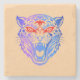 This vibrant illustration features a tiger's face in a tribal design with bold red, blue, and purple gradients. The detailed patterns create a fierce yet artistic look, set against a dark background.
