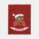 Throw blanket with an illustration of happy smiling African American man with Santa Claus' hat; with editable text template; Christmas holidays design with a red background