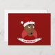 Postcard with an illustration of happy smiling African American man with Santa Claus' hat; with editable text template; Christmas holidays design with a red background