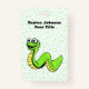 This name or identification badge is white with bright green polka dots and a smiling neon green and yellow snake with big white eyes. Customise your name and information with the templates.