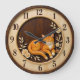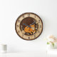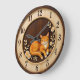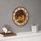 Brighten your home with this heartwarming wall clock featuring a high-definition image of a smiling orange tabby cat. The contented feline is shown resting comfortably on a rustic branch, accented by delicate cream-colored daisies and graceful leaf vines. The design is set against a rich, dark-textured wooden center that provides a beautiful depth to the artwork. An outer frame with a light cream wood grain print features bold, classic numeric markers for easy reading at a glance. While the face creates a wonderful layered visual effect, it is a lightweight and durable graphic timepiece perfect for a kitchen, sunroom, or living area. This high-energy design captures the friendly spirit of a beloved pet and the quiet beauty of nature in one polished package, making it an excellent decorative focal point for any cat lover.