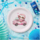 Smiling Pink Sloth Driving a Convertible Paper Plate