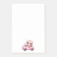 Sticky notes with a whimsical illustration. A pink sloth driving around in a pink convertible. Adorable.
