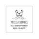 Simple cartoon illustration of a happy pit bull dog peeking from behind a divider. Only its head and front paws are visible. Customise with your own address.