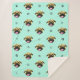 Smiling pug face mint blanket designed by Ellen Jagger.