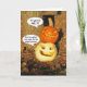 This cute Halloween card shows two smiling pumpkins stacked on top of each other. The orange pumpkin is on top of the yellow one and nearly falling off. The orange pumpkin says, "I'm gonna FALL!!" The yellow pumpkin responds, "Don't complain. Just smile for the stupid picture!" The message inside this card is easy to customize with your personal Halloween wishes, or you can leave the message as shown. The message shown inside says, "Wishing you a lot of fun and big smiles this Halloween!"