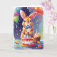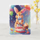 Cute character at celebration party. Blank for your own greeting and personal message inside.