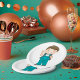 Bring fun to your next party with these paper plates featuring a cheerful cartoon school boy illustration. The smiling child in overalls with a backpack adds a playful touch, making them perfect for birthday parties, school celebrations, or casual gatherings. Made with sturdy materials and printed in bright, vibrant colours, these disposable plates are both practical and stylish. A great way to serve food while adding personality to your table, these plates make events more memorable for kids and adults alike.