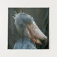 In the close-up, a shoebill smiles with its beak open, revealing a glimpse of its tongue. The majestic bird exudes charm and grandeur, captivating with its imposing yet friendly presence.