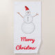 Smiling Snowman, Red Santa Hat, "Merry Christmas!" Beach Towel
