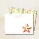 This underwater note card features a cute smiling starfish on the front. The cheerful ocean character gives the design a fun and friendly feel. The back of the card is decorated with an underwater pattern of seaweed and bubbles, creating a light marine atmosphere.