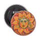Bottle opener button featuring bright artwork, celestial sun with smiling face, orange and red colours. The sun gives us a light and brings life. It will represent people’s personalities and egos and their spirit. It will make people original and symbolises the creative force of life. This design will be a great gift for Leo or just for someone very special in your life. Pastel painting, fantasy art / illustration, Russian / slavic folklore. © Clipso-Callipso / Julia Khoroshikh