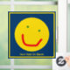 A green-eyed yellow sun smiling on a blue background. Add your own text. You may change the colour of both the text and the background. You may also change the border colour or remove it completely.