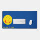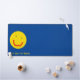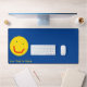 A green-eyed yellow sun smiling on a blue background. Customise by adding your own text. You may change the colour of both the text and the background.