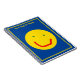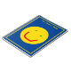 A green-eyed yellow sun smiling on a blue background. Add your own text. You may change the colour of both the text and the background. You may also change the border colour or remove it completely.