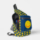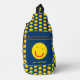 A green-eyed yellow sun smiling on a blue background. Customise by adding your own text. You may change the background colour as well as the font and text colour.