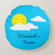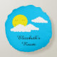 Smiling Sun with Clouds: Turquoise Round Cushion