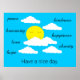 The smiling sun is back with more clouds. This poster will brighten your day. It will also remind you of some of the important things in life. Original work; (c) Sharon Lee Hudson. All rights reserved.
