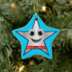 This ornament features a character that has a happy, laughing face in a silver coloured star outlined in black. A wonderful token of achievement.