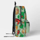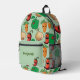 Cheerful green bell pepper, chilli pepper, onion and carrot on a green polka dot background. Your name on the front pocket with a cheerful chilli pepper.
