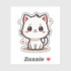 Smiling white kitten in kawaii chibi design with pastel tones, great for stickers, planners, and adorable stationery.