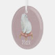 Keepsake ornament features a watercolor illustration of a smiling white Persian cat perched on a fancy tufted pillow. Customise with year or other special text