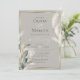 Mushroom taupe background with slight textured appearance and sparkly double gold frame, sets off this graceful array of ivory pampas grass. Rich teal anthurium leaves edged in gold delivers a pop of colour. Modern and trendy this wedding theme is perfect for any time of year. Modern script calligraphy combined with a minimalist, contemporary style font layout creates an eye catching design. This is part of a wedding stationery collection with matching wedding accessories. Original artwork by ©WhimsicalArtwork™ created specifically for the BarefootBride™