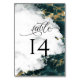 Wedding Table Number | Modern Smokey Teal Sapphire Watercolor Geode by the BarefootBride™ - Modern Wedding hand painted beautiful watercolor illustration in shades of deep teal and white with sparkling gold veining highlights has the appearance of a teal sapphire gem geode - A combination of script calligraphy combined with a minimalist, contemporary style text layout makes it a trending style wedding suite. This is part of a wedding stationery collection with matching wedding accessories.
