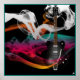 Psychedelic smoke surrounds this classic black hollow body guitar