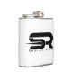 The flask itself is fine. It’s a cheap flask, obviously bought in bulk, however am prepared to overlook that. Given that it is a personalized item, I would have liked to have seen gift boxing instead of the generic packaging. Terrible printing, and/or quality. It’s a cheap, tacky vinyl. It is not cut straight and is also applied in a way that it is overhanging the bottom, causing the glue to catch on items and it will eventually roll and tear, damaging the wrap.