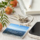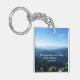This photo keychain, square shaped, features a beautiful mountain landscape, in the Great Smoky Mountains National Park. The sky is a vibrant blue, with a blue smoky mist hovering over the rolling mountains. Naturalist John Muir's famous quote: 'The mountains are calling and I must go.'is included. This photo was taken from the top of Mt. LeConte, on Myrtle Point, the morning after snow fell in the higher elevations. The mountain photo and popular quote can be easily re-sized or moved.