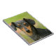 Smooth-haired Miniature Dachshund Puppy Looking at Notebook