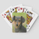 Smooth-haired Miniature Dachshund Puppy Looking at Playing Cards