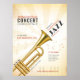 Customize this trumpet/music event advert poster with your info. Subtle musical notes and piano/keyboard keys are featured in the background