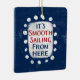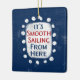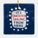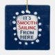 Bold text reading "Smooth Sailing From Here" is centred against a navy blue background. The red and blue text sits on a white rectangle with large textured white dots around it, providing a playful contrast against the solid colour backdrop.