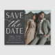 A modern save the date magnet designed to accommodate your favorite vertical or portrait oriented engagement photo. "Save the date" appears alongside your photo in chic block and script lettering, with your names, wedding date and wedding location beneath.