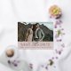 A modern save the date postcard designed to accommodate your favourite horizontal or landscape orientated full-bleed engagement photo. "Save the date" appears beneath your photo in rose gold foil block and script lettering, with your names, wedding date and wedding location beneath. Postcards reverse to show additional save the date details, including your wedding website, with your return address and space for recipient addressing.
