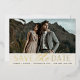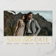A modern save the date card designed to accommodate your favorite horizontal or landscape oriented full-bleed engagement photo. "Save the date" appears beneath your photo in gold foil block and script lettering, along with your names, wedding date and wedding location. Personalize the back with additional details, such as your wedding website.